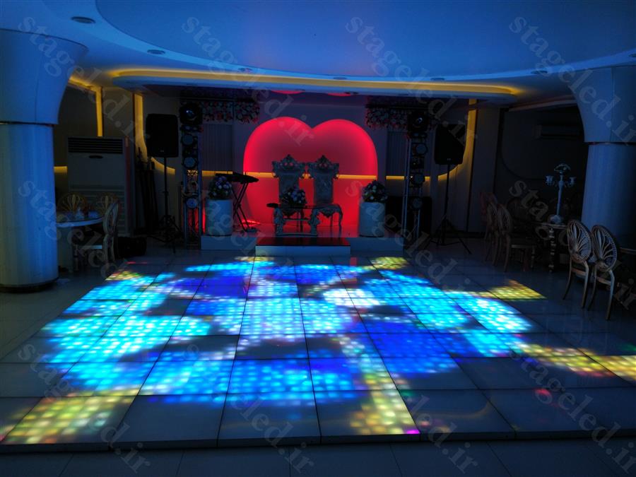 کف ال ای دی تالار یزدان واقع در صادقیه کاشانی ، مساحت 35 متر مربع تراکم 100 پیکسل سطح فلکسی باکس فلزی