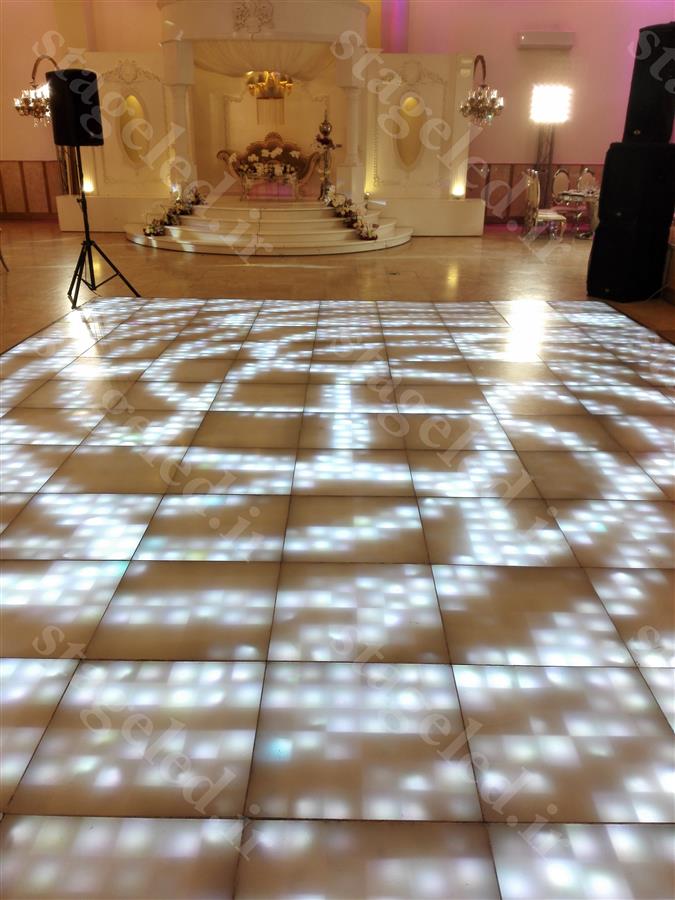 باغ تالار سعادت ، مساحت پیست رقص 45 متر مربع سطح فلکسی بدنه فلزی تراکم کف ال ای دی 100 پیکسل در متر مربع ، کنترلر اتوماتیک و کنترل کفپوش به وسیله کامپیوتر ، ارتفاع پیست رقص از سطح 6 سانتی متر، تحویل پروژه در بهمن ماه 1394 واقع در گرمدره - سعادتیه.