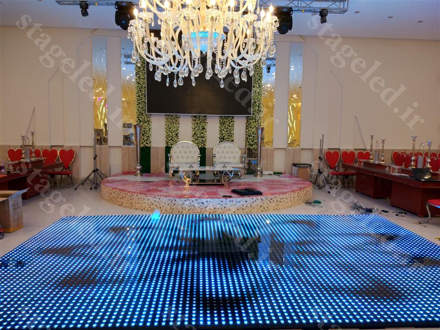 پیست رقص عروس و داماد باغ تالار شمس العماره به مساحت 24 متر متر مربع سطح شیشه نشکن بدنه ABS و کاملا ضد آب ، تراکم ال ای دی 256 عدد در متر مربع و کنترل به وسیله ریموت ، DMX ، اتوماتیک و میکروفن ،، تاریخ اجرا تیر ماه سال 96
